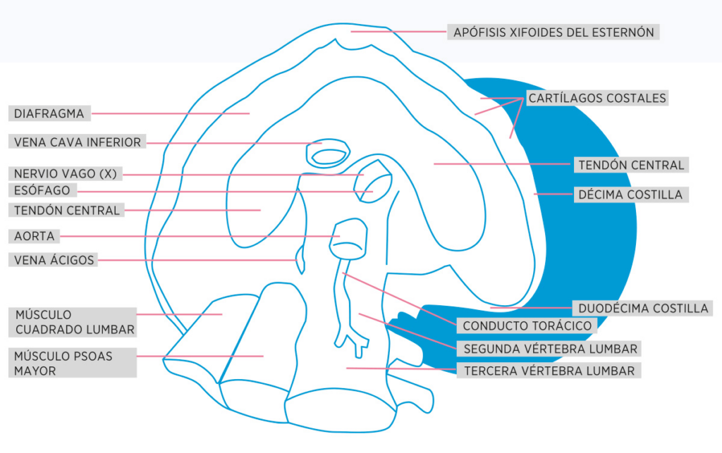 Además, el diafragma posee orificios o hiatos por los que discurren vasos y estructuras importantes: