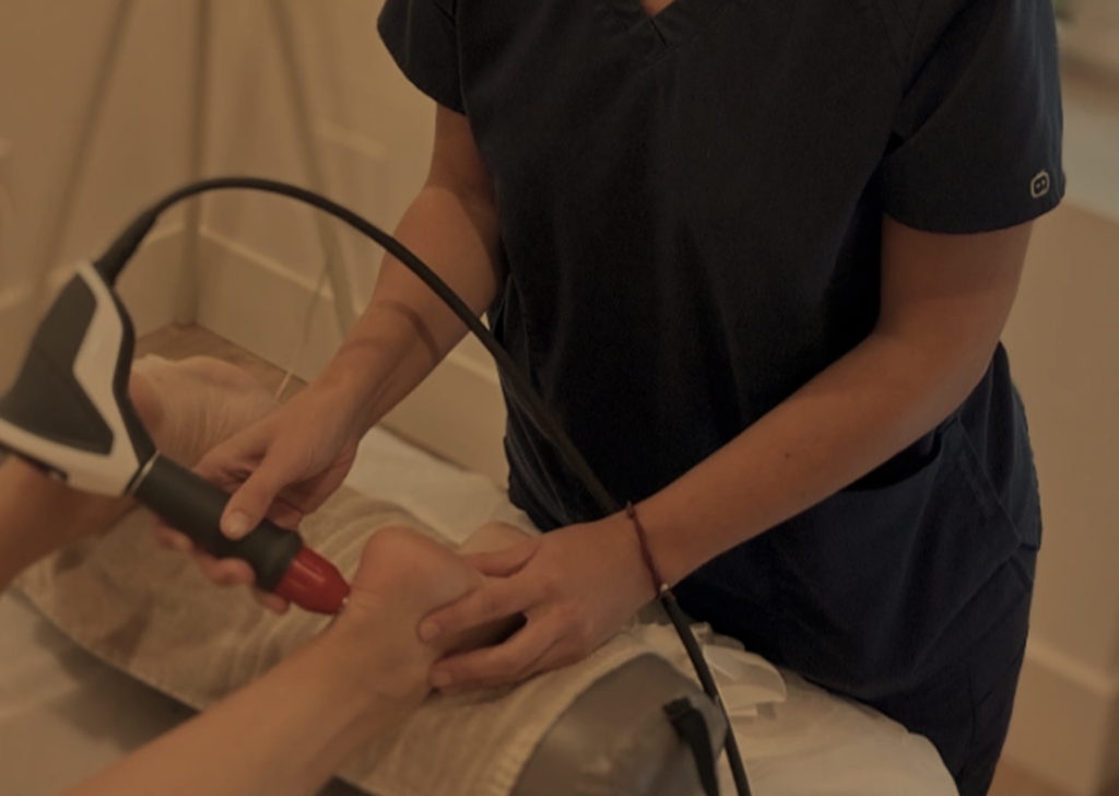 • El tratamiento se aplica con un equipo especializado de ondas de choque radiales o focales, según la lesión.