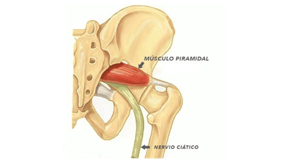 - Síndrome del músculo piramidal: el espasmo del músculo piramidal puede causar compresión del nervio ciático dando dolor en el recorrido del nervio. Este síndrome causa un dolor en nalga y muslo afectando al nervio ciático.